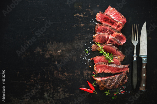 Season the ribeye steak with liquid marinade or dry seasonings.
