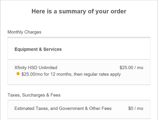 Comcast Xfinity Unlimited Bandwidth 25 Per Month X 12 Months