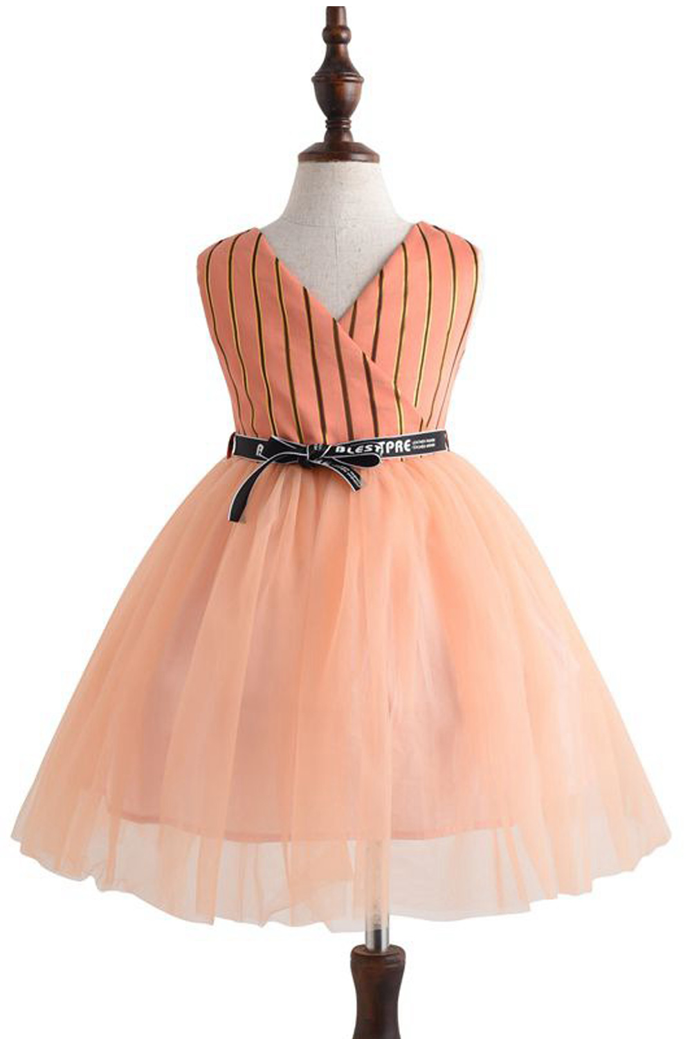 Kettymore Kids Girls Striped Lines V Neck Party Dress