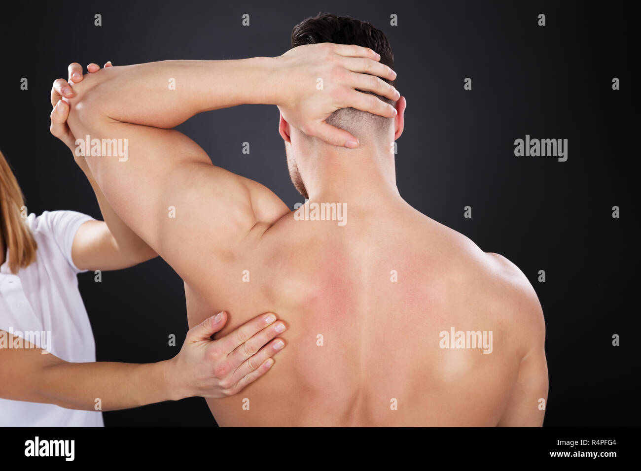 Male Physiotherapist Giving Shoulder Massage To Woman Stock Photo