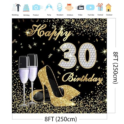 Amazon Com Mocsicka Happy 30th Birthday Backdrop 8x8ft High