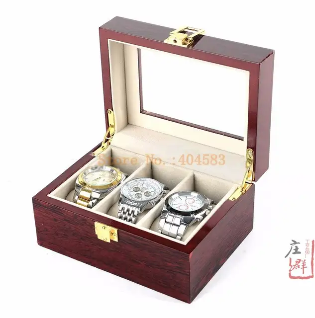 Glass Lid 3 Slots Luxury Cherry Wooden Lacquered Gift Wrap Box For