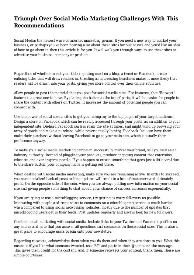 Triumph Over Social Media Marketing Challenges With This Recommendati