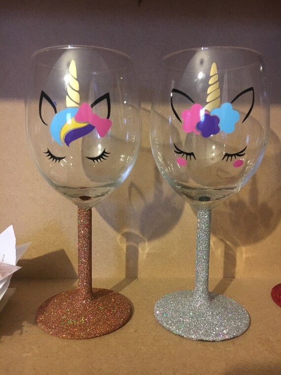 Personalised Unicorn Rainbow Glitter Wine Glass Etsy